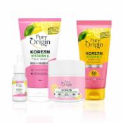 Pure Origin Korean Bright Boosting Face Combo | Face Wash With Microbeads (150ml), Serum (10ml), Moisturizer (100g) & Light Gel Sunscreen with SPF 50 & PA+++ (50 g)| For Visibly Bright & Glowing Skin | No White Cast | All Skin Types