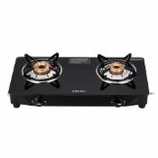 GREENCHEF Elon Glass cook top 2 Burner Gas stove,Black Body (Manual Ignition)