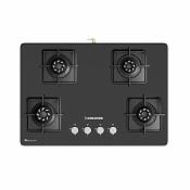 Khaitan 4 Burner Premium Black Toughened Glass LPG Gas Cooktop, Manual Ignition Gas Stove with 1 Year Warranty (ISI Approved) (4 Burner)