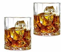 FINSTER Glass Crystal Cut Diamond Whiskey Glasses Set of 2-320ml, Transparent Bar Glass for Drinking Bourbon, Whisky, Scotch (Great Gift Idea for Whiskey Lover)
