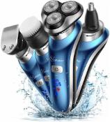 Hatteker 4 in 1 Electric Cordless Wet Dry Face Brush Rotary Shaver, Trimmer for Men for Beard, Nose, Hair (Blue)