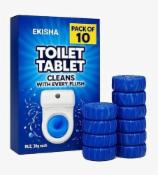 EKISHA Automatic Flush Toilet Bowl Cleaner Tablets, Bathroom Toilet Tank Cleaner, Powerful Cleaning Ball Toilet Blue Deep Clean Bubbles, Mild Lemon Scent (Pack of 10)