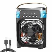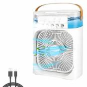 Drumstone White Portable Air Conditioner Fan. Perfect for shops, offices, and kitchens, this USB-powered mini AC is a versatile combination of a desk fan, portable humidifier, and mini cooler.