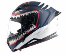 Axor Hunter Shark ISI ECE and DOT Certified Matte Finish Full Face Helmet for Men with Pinlock Fitted Clear Visor-Dull Blue White-L