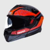 Axor Apex Streak ISI ECE and DOT Certified Gloss Finish Full Face Helmet for Men with Pinlock Fitted Outer Clear and Inner Sun Smoke Visor- Black Red Helmet-M