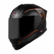Steelbird SBH-57 Carbon Fighter ISI and DOT Certified Full Face Helmet for Men and Women with Inner Chrome Sun Shield (X-Large 620 MM, Glossy Black Orange)