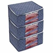 HomeStrap Set of 3 Non-Woven Printed Saree Cover/Cloth Storage/Organizer with Transparent Window (Navy Blue)(Featured on Shark Tank), 33.5 x 22 cm
