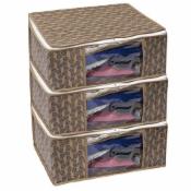 Homestrap Set of 3 Non-Woven Printed Saree Cover/Cloth Storage/Organizer with Transparent Window (Beige)(Shark Tank Product)
