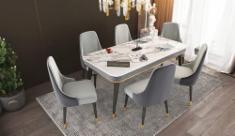 WOODEN SPACE 6-Seater Wooden Dining Table Set | Nano Composite Marble Top | Solid Wood Base | Modern Dining Room Furniture with 6 Chairs (Gray 2)