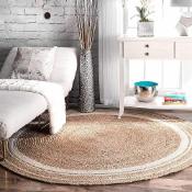 imsid Handwoven 5x5 feet Jute Round Rug, Natural Fibers, Braided Reversible Carpet for Stylish Bedroom Living Room Dining Room Kids Room (5x5 feet Round, White & Beige)
