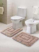 Saral Home Cotton Anti Slip Bathmat Set with Contour | Washable, Non-Slip & Quick-Drying Mats for Home/Kitchen/Office | Soft & Super Absorbent Mats for Shower (Beige, 45x60 cm & 45x50 cm)