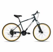 NINETY ONE Kamet 27.5T 21 Speed Shimano Gears Alloy Bike with Dual Disc Brake Hybrid Bike (Gray and Yellow, 12+ Years, 18.5 Inches Frame) for Men