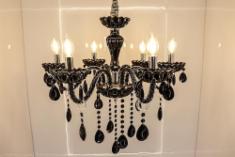swanart Vintage Black Crystal Chandelier - Elegant 6-Light Pendant with Black Beads and Candle-Style Lights, Perfect for Living Rooms, Dining Rooms, and Bedrooms