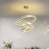 LIGHTAVERSE Chandelier for Living Room Modern 3 in 1 Light 3 Rings Gold Double LED Chandelier Hanging Ceiling LAMP - Warm White, Cool White & Natural White with Remote for Dimming The Light