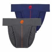 omtex Men's Athletic Neo Cotton Stretchable Supporter Back Covered with Cup Pocket, Ideal for Workout and Sports Quick Dry Moisture Wicking Underwear (Pack of 2), Navy-Grey, Medium