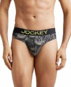 Jockey FP22 Men's Super Combed Cotton Elastane Stretch Printed Brief with Ultrasoft Waistband_Black & Empire Yellow_L
