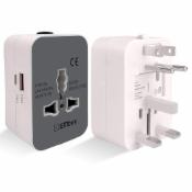 GM 3005 Universal Travel Adapter, 3 Pin Charger for Phones, Laptops, Earbuds and Other Devices, Travel Light with This Multipurpose Adaptor (White)