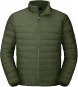 Ben Martin Men's Nylon Standard Length Puffer Winter Bomber Biker Casual Jacket Olive Green 2XL