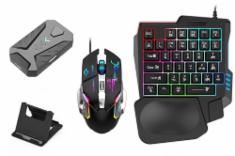 4 in 1 Mobile Game Combo Pack Pro with RGB Mini Gaming Keyboard & Mouse with Side Button, Gaming Adapter with Mobile Game Converter for Android (Wired+Wireless (APP Require))