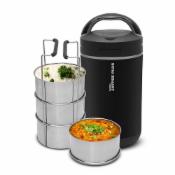 MILTON Lofty Lunch Box with Insulated Fabric Bag, Microwave Safe & Leak Proof, 3 Inner Steel Containers with BPA Free Lids (1 x 320 ml, 2 x 450 ml Each) for Office, School, College - Black