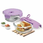 Borosil Klip n Store Lunchbox with Bag | Set of 3 (400 ml Each) | Borosilicate Glass, Round, Vertical | Microwave & Dishwasher Safe, Leak Proof | Tiffin for Office, School, College | Blue