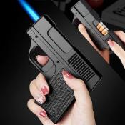 WBD Cigarettes Case with Lighter | Windproof Guns Lighter with Jet Torch | Refillable Lighters with Cigarettes Holder Box | Cool Funny Gifts for Men GUN STYLE BLACK,Metal