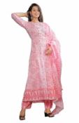 Rangnavi Women Rayon Anarkali Embroidered Printed Kurta Pant with Dupatta Set, Pink, Medium