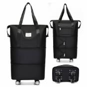 Wazdorf Travel Duffle Bag with Wheels- Foldable, Expandable, Extendable Trolley with 4 Detachable 360° Wheel, Waterproof Luggage for Men & Women, Convertible Carry-On with Strap & Carry Option (Black)