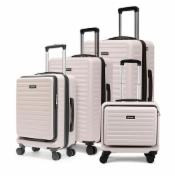 SANKIRTAN ABS Trolley Bag And Cosmetic Bag Small Cabin Suitcases For Travel With Wheels Password Lock Kids Girl Suitcase Mini Trolley Rolling Luggage Bag Piece 2 (White,40 cm,hard,8 Spinner)
