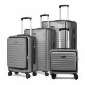 Urban Jungle by Safari, The Caliber Front Open Cabin (59cm) Trolley, 50L Hard Sided Polycarbonate Small Suitcase with USB Charging Socket, TSA Lock, Anti Theft Zipper, 8 Silent Wheels (Raven Black)