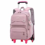 Climberty® School Bag for Girls Large School Trolley Bag with Detachable Wheel Stand,Retractable Pull Handle and 6 Wheels Travel Fashion Waterproof Backpack with Trolley Bags for Girls - Pink