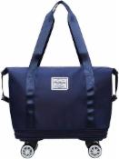 LIGHTNIING HAMMERZ Expandable Rolling Duffle Bag with Wheels and Handle for Travel, Foldable Luggage Carry-on Duffel, (Navy Blue)