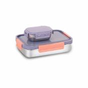 WARMEO Carnival Stainless Steel Airtight Leak-Proof Lunch Box, Light Weight, Easy to Clean, Perfect for Office, School, Picnic & Travelling, Set of 2 (800ml+150ml) Purple & Peach