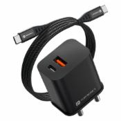 Portronics 20W Adapto 20B Dual Port (Type C PD & USB-A) Fast Charging Adaptor with Type C to Type C Cable, Smart Protection Chip, Wide Compatibility, Best for iPhone/Samsung/Oneplus (Black)
