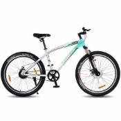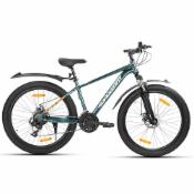Vaux Blaze 27.5T Cycle for Men| Single Speed MTB| 15" Hiten Steel Frame | Dual Tone Colors | Dual Disc Brakes | 27.5 * 2.4 Nylon Tyres | 80mm Front Suspension| Double Wall Alloy Rims(Silver-Green)