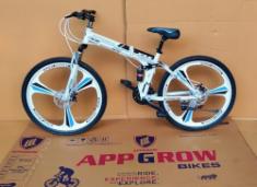 APPGROW Foldable Mountain Bike, 24-inch Wheels, Mag Alloy Frame, Disc Brakes, White and Blue