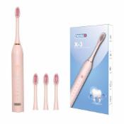 Dento-B Adult X-3 Sonic Electric Toothbrush With 3 Brush Heads 6 Brushing Modes 42000 Vibrations Per Minute 2 Hours Charging Lasts Upto 60 Days Ipx7 Waterproof Head 1 Year Warranty Multicolor (Pink)