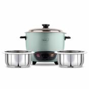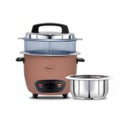 "Electric Multi Cooker, Concealed Base, Noodle & Egg Boiler, Vegetable & Rice Steamer - Stainless Steel & Plastic, Outer Lid"