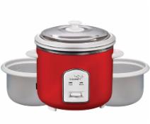 V-Guard Rice Cooker with Double Bowl BIS CERTIFIED 2.8 litres ||2 Cooking Pot|| Double layer outer body|| 1000 Watts 5-Year Heating Plate & 2-Year Product Coverage by V-Guard {2.8 L, Red -VRC2.8(2CB)}