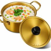 Yopple Golden Stainless Steel Rice Cooker 3 Liter with Strainer Lid, Rice Boiler Pot, Induction Base, Gold Finish Traditional Indian Cooking Serving Pot Bowl