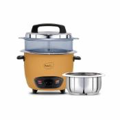 Pigeon Inox Pro Rice Cooker with Steamer, 1 litres | Stainless Steel Lid | 700 Watts | 1 Steel Cooking Pot | Measuring Cup | Spatula | Energy Efficient Cooking (Yellow)