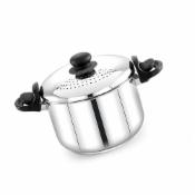 The Indus Valley Stainless Steel Strainer Pot/Rice Pot with Strong Lockable Lid for Noodles, Pasta, Corn, SOYA, Vegetables & Rice | 3.5L, 1.08kg | Gas & Induction Friendly | 3-Layer Sandwich Bottom