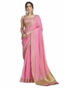SWORNOF Womens Cotton Saree with Unstitched Blouse | Saree for women with Blouse Piece | Soft and Skin Friendly (PINK1)