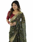 SIRIL Women's Georgette Bandhani Printed and Embroidery Saree with Unstitched Blouse Piece (4132S136_Dark Green)