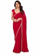 SIRIL Women's Georgette Mirror Work Lace Saree with Unstitched Blouse Piece (4255S667_Red)