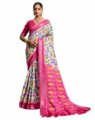 SIRIL Women's Soft Silk Ikat Printed Zari Border Saree with Unstitched Blouse Piece (4506S1002_Pink)