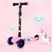Hoppie Kids Kick Scooter, 3-Wheel Stability-Skating Cycle Adjustable Height for Growing Kids, Foldable & Portable, LED Light-Up Wheels, Rear Foot Brake, Lightweight & Durable, (Unicorn, Pink)