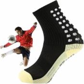 WKLOUYHE Men's Grip Soccer Socks Non Skid Socks Anti Slip Non Slip Grip Pads for Football Basketball Sports (Pack Of 01,Black)