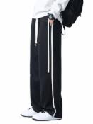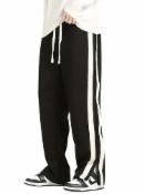 Mack Jonney Men's Mid Rise Black Striped Track Pants - Loose Fit, Summer, Size L