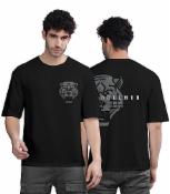 BULLMER Trendy Front and Back Printed Oversized Round Neck T-Shirt for Men - Pure Black/Large